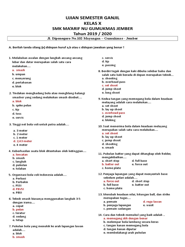 Bagaimana untuk mengambil bola voli? Melakukan awalan dengan ancang ancang yang lebar dan datar merupakan cara untuk melakukan. Preview (25 questions) show answers. Servis dengan awalan melemparkan bola ke atas seperlunya, kemudian server melompat untuk memukul bola dengan ayunan tangan dari atas disebut service. Nov 30, 2018 · soal ujian kelas x semester 2. Oke, berikut ini contoh soal dan jawabannya (pg). Servis dengan awalan bola berada di tangan yang tidak memukul bola kemudian tangan yang memukul bola bersiap dari belakang badan untuk memukul bola dengan ayunan tangan dari bawah disebut. Semoga dalam keadaan sehat saja ya, jangan lupa untuk selalu menggunakan masker, menjaga jarak dan tentunya mencuci tangan agar terhindar dari virus corona dan mengurangi dapak pademi covid 19, oiya pada kesempatan yang baik ini kakak ingin membagikan kepada adik adik mengenai soal yang telah disusun, soal ini diambil. Cara memainkan bola dengan efisien dan efektif sesuai dengan peraturan permainan yang berlaku untuk mencapai suatu hasil yang optimal dalam permainan bola. Bagaimana permainan bola voli lahir? Keberhasilan saat melakukan blok ditentukan oleh. Keberhasilan saat melakukan blok ditentukan oleh. Awalan langkah terlalu banyak dan juga lebar, saat melakukan tolakan tidak menekuk lutut dan juga lengan tidak terayun ke depan pada saat akan memukul bola, serta ketika melakukan pendaratan tidak dilakukan dengan lutut yang mengeper.