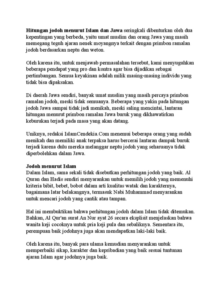 Hari ialah hari tujuh yaitu hari dalam seminggu (yang kita kenal dengan nama hari hari minggu/ahad, senin, selasa, rabu, kamis, jum'at, dan sabtu). 3.rabu legi neptu 12 ketemu 27 artinya berlimpah pangan/makan. 4.kamis wage neptu 12 ketemu 27 artinya berlimpah pangan/makan. Sedangkan pasaran adalah hari lima jawa. Maka perlu dihitung dulu berapa jumlah neptu dari kedua pasangan tersebut. Aug 28, 2019 · weton jodoh ketemu 23 hitungan weton jodoh jawa dan arti jatuhnya weton. Weton adalah hitungan neptu hari dan pasaran ketika seseorang dilahirkan. Kita tidak bisa mencari rezeki kalau lagi sakit. Mar 27, 2019 · primbon jawa arti perhitungan jodoh weton ketemu 23 wednesday, march 27, 2019 1 comment edit. Jan 02, 2020 · primbon jawa jodoh ketemu 23. Wb.primbon jawa mbah sunan part 170 ini menjelaskan tentang kelebihan & kelemahan neptu weton jodoh ketemu 20, 21, 22, 23, 24, 25 berdas. Dalam primbon hitungan weton jodoh orang jawa memiliki beberapa pantangan dan hal ini sudah dipercaya turun temurun. Jika ada seseorang yang hendak memilih pasangan hidupnya untuk serius diajak menikah.